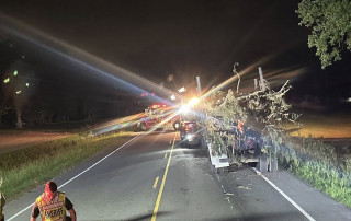 A lone log trailer was left blocking one lane of a two lane road in North Carolina on Monday night. ...more