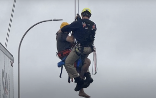 A 911 operator used the successful Clark Memorial Bridge rescue as a way to reassure the dangling truck driver in ...more