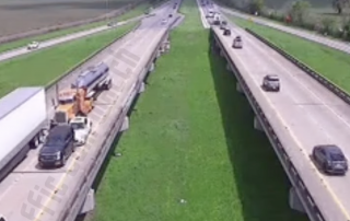An apparently unaware truck driver just drives right into a couple of stopped cars on a Louisiana interstate in this ...more