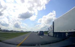 VIDEO: Trucker cut off by clueless car driver takes to the shoulder to prevent a big wreck
