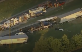 Three dead, 14 injured after bus crashes into rigs parked outside of rest area